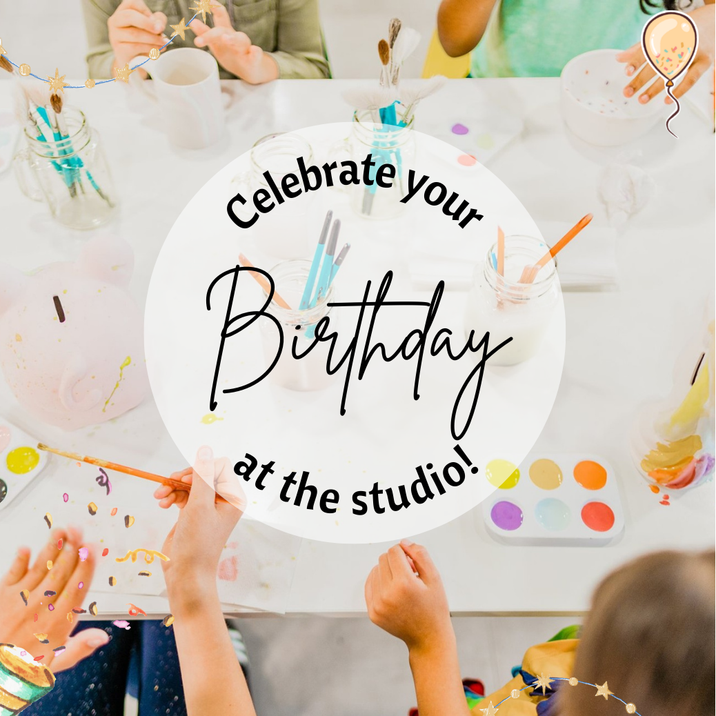 Get in on the fun this year! Let us host an Art Adventure for your child's birthday. Reward your budding artist with a customized birthday party at Quiggly's. Choose the neatest pottery to paint, make the best mosaics, or sculpt the coolest creation with clay. Your kids can even spin our pottery wheels! Get Clay'd up with us! We offer a private party room that seats up to 30 with an area for food, drinks, presents etc.